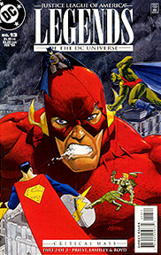CHAPTER SIX I remember the exact moment I gave up on comics. There was a scene, on page 20 of issue #1 of a thunderously ignored miniseries called TOTAL JUSTICE, where the Flash was racing across a beach with Robin and Green Lantern. It was supposed to be this incredibly devastating moment for Wally West, a guy who is so invested in his super-power that the power literally makes him who he is. Due to plot device/McGuffin hoo-hah, everybody's lost their powers, and Flash experiences the humiliation of not quite being able to keep up with the sprightly Robin without them. As Wally invests in trying to attain even this small victory— trying to pass Robin on the stretch— an even greater horror befalls him: Green Lantern passes him, too. I thought I'd had a Great Mark Waid Moment (TM). Something that might actually be remembered long after JUSTICE had become yet another forgettable toy tie-in. To my horror, when the finished comic arrived, I flipped to that scene to see the artist had chosen the exact wrong angle to shoot this scene. You see, in comic books, you can't ever portray speed with n object coming right at you. Well, you can, but you have to be exceptionally talented. Comic books use still pictures. Objects coming at us look static and lose perspective with the world around them, so it's difficult to portray immediacy or speed. If you have three guys running across a beach, you can shoot that form most any angle you could imagine, except the dead-on angle. And that's how the artist chose to draw that sequence: three guys running right at us. The scene had no feeling of speed, time, or place. No sense of motion whatsoever. The three of them looked as though they were standing still, the horrific moment when Flash was overtaken by Kyle Crab-Face Guy (TM) was obliterated in bad storytelling and day-glow color. And I knew, for me, that it was over. TOTAL JUSTICE, which began with some arm twisting and assurances that we would, "Take it seriously," was clearly about to begin the drain-circling that was typical of most everything I was doing in those days. When I seemed to be the only guy on any of the books I was doing who actually cared about the work and invested himself in it. Most everyone else seemed to be in it for the paycheck, with not a lot of thought about doing a good job or telling a good story. Okay, sure, it's my fault. The script never said, "Don't shoot them coming right at us. Have them run ACROSS the page," but, to me, it still seemed like little or no thought went into it.